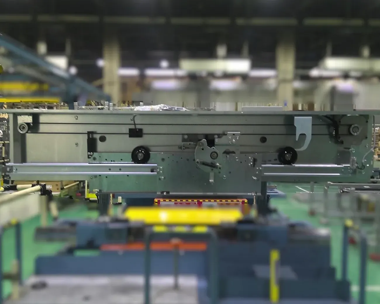 ドアの開閉装置はエレベーターのドアの種類(両開き・片開き)に応じ、様々な種類があります。かご室・乗場でそれぞれ独立の開閉装置が備わっています。